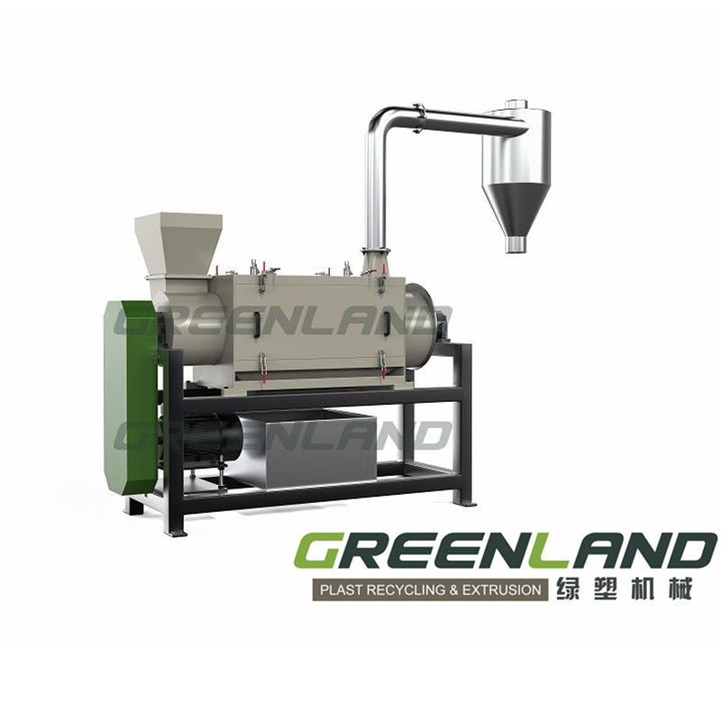 The production line includes conveyor ,crushing (with water), rinsing, high-speed friction washing, dewatering, drying, collection and packaging systems;